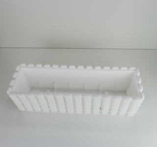 Doniczka o rozmiarze 600 ma długość 580 mm szerokość 180 mm i wysokość 162 mm