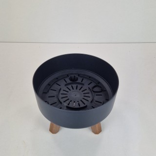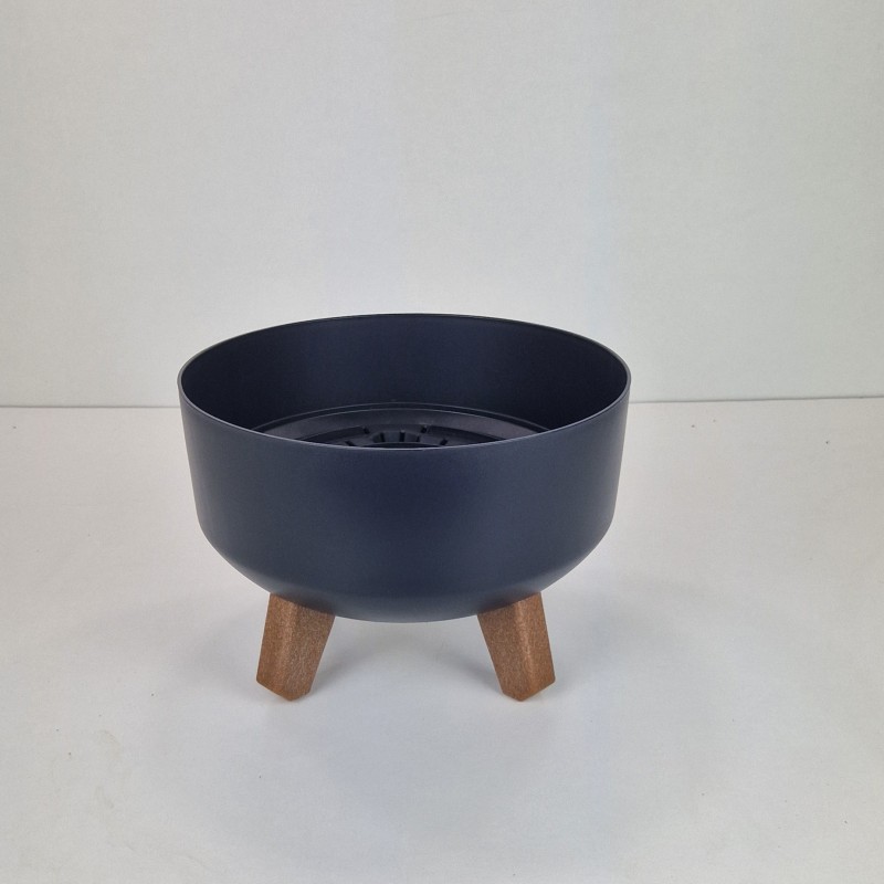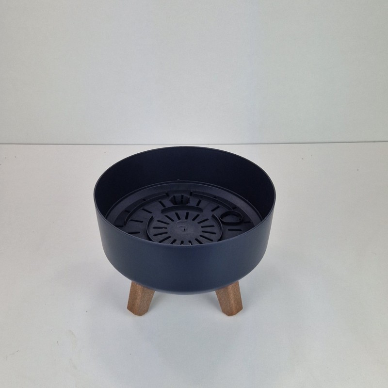 Minimalistyczna doniczka z nóżkami imitującymi drewno, całość ma gładką i prostą formę więc wpasuje się do każdej przestrzeni.