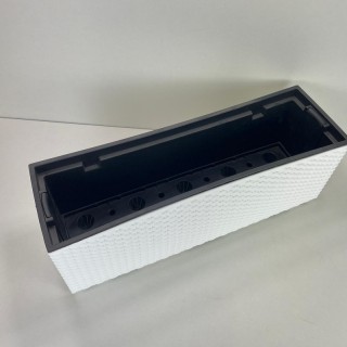 To klasyczna a zarazem urokliwa skrzynka na rośliny balkonowa, posiada fakturę przypominającą plecionkę rattanową co dodaje jej niezwykłego uroku. Skrzynka posiada wkładkę która chroni przed przypadkowym wysypywaniem się ziemi, oraz otwór do odprowadzenia wody.