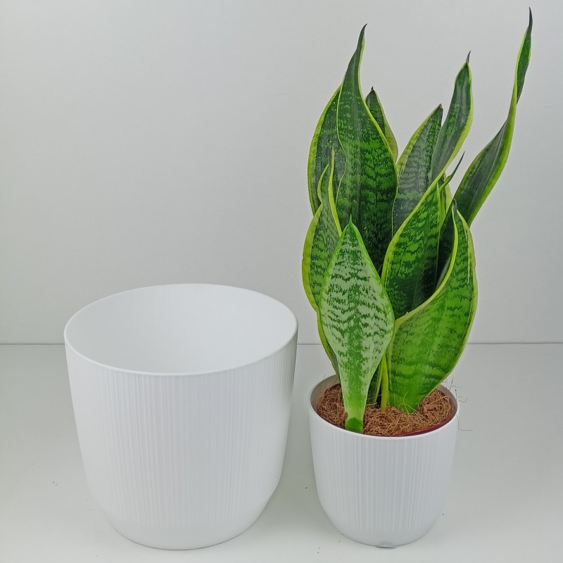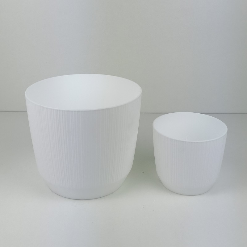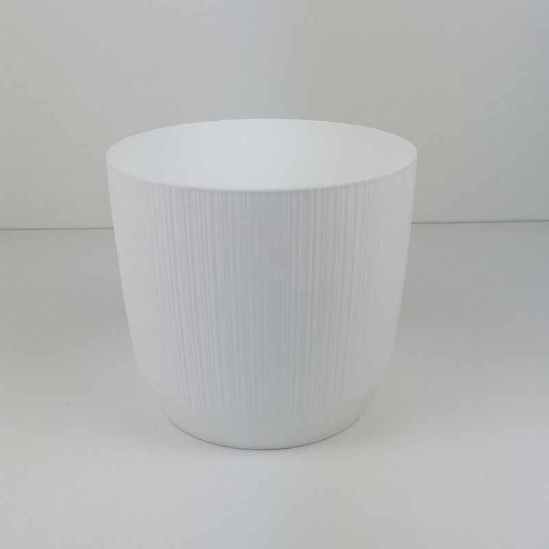 Doniczka o pionowej ryflowanej strukturze wykonana została z wysokiej jakości tworzywa sztucznego.