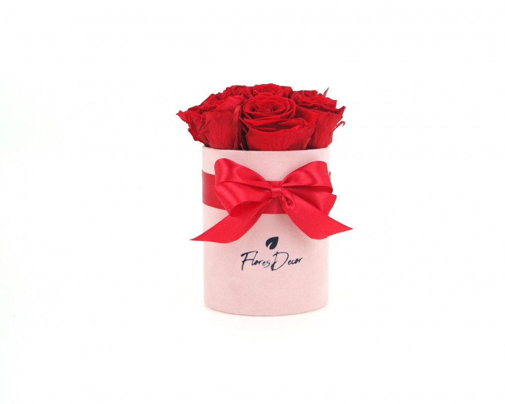 Flower Box “M“ czerwona róża wieczna w różowym pudełku