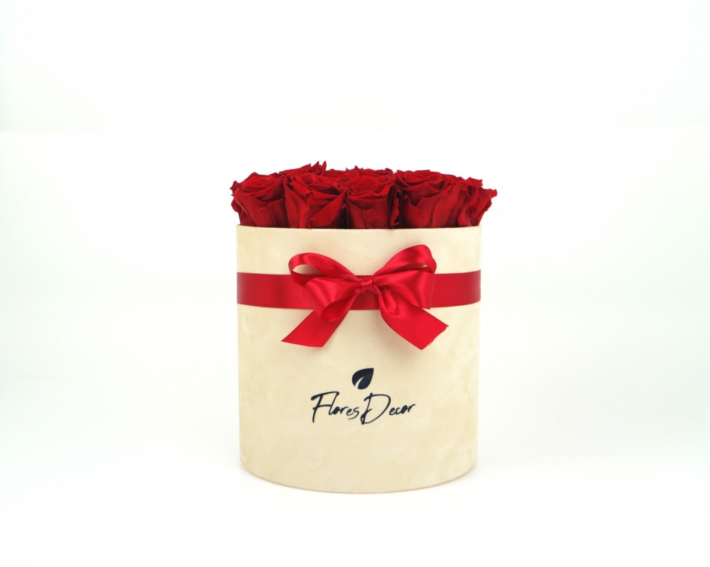 Flower Box “XL“ czerwona róża wieczna w kremowym pudełku