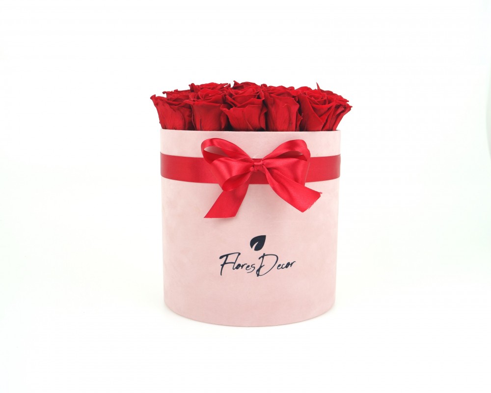 Flower Box “XL“ czerwona róża wieczna w różowym pudełku