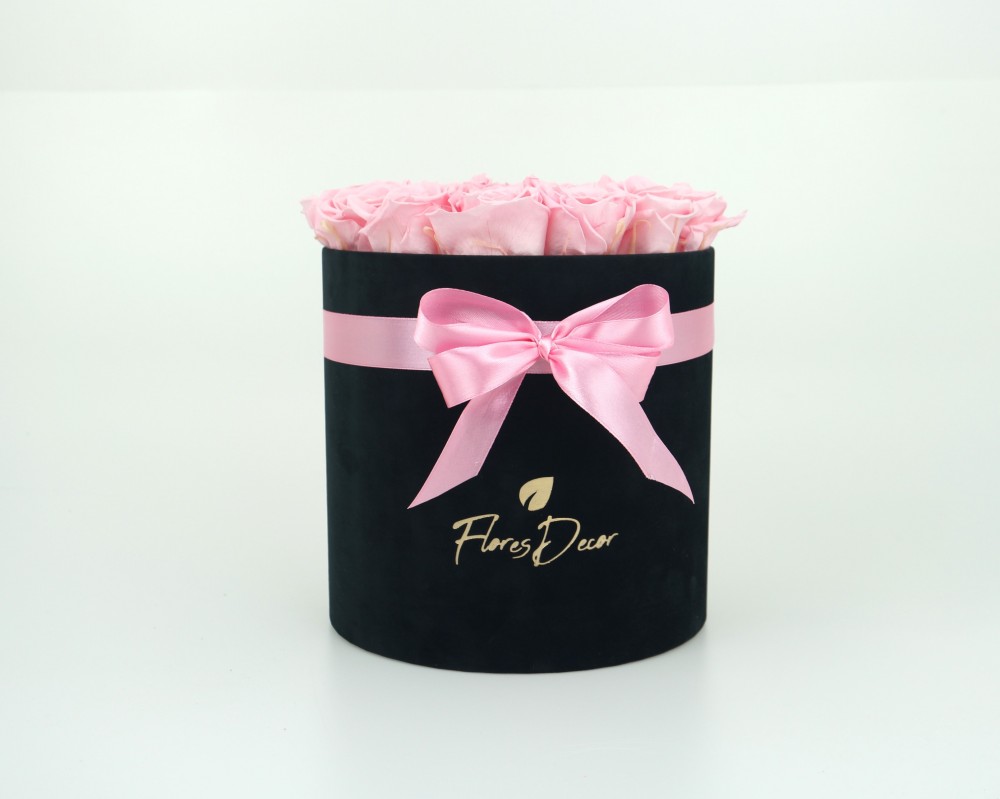 Flower Box “XL“ różowa róża wieczna w czarnym pudełku