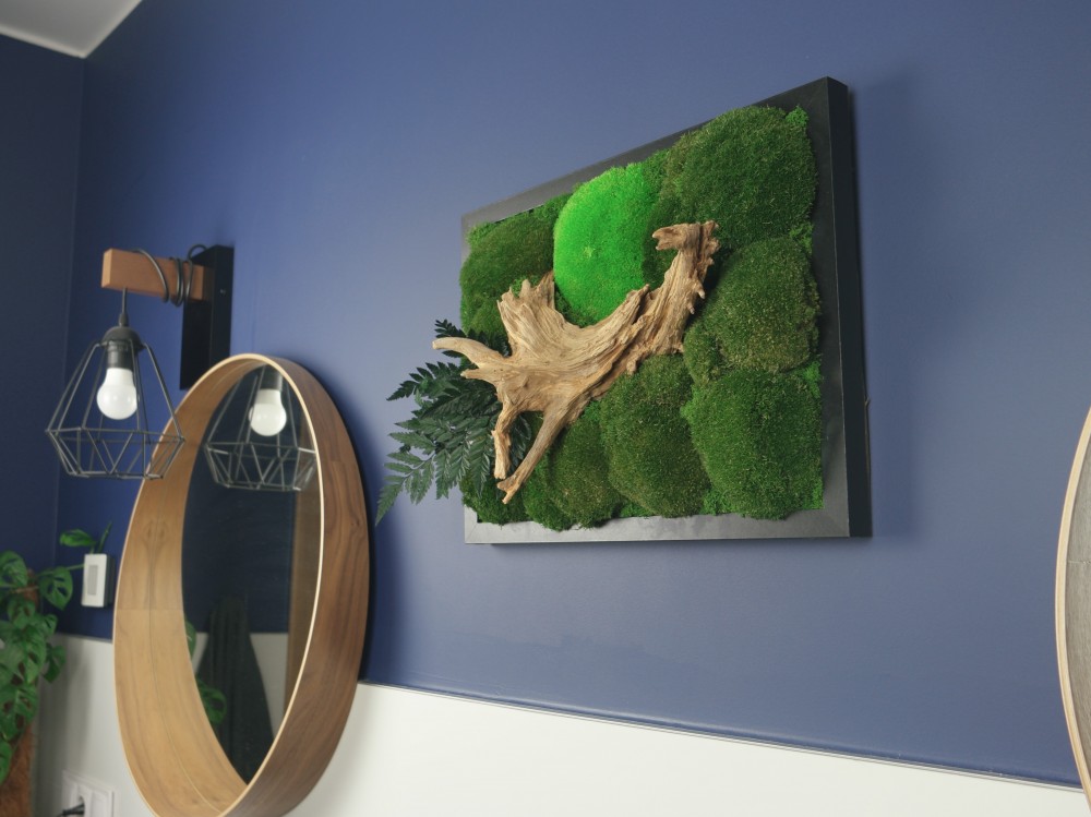 Obraz z mchu to świetna ozdoba do nowoczesnych jak i klasycznych pomieszczeń.