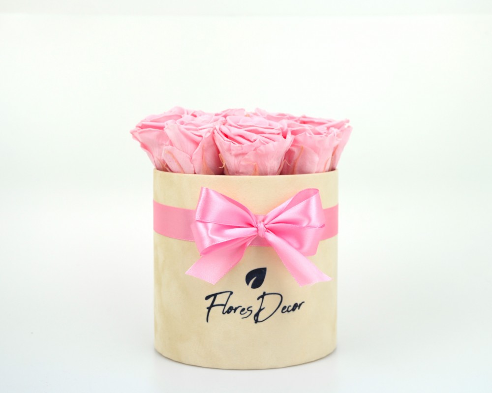 Flower Box “L“ różowa róża wieczna w kremowym pudełku
